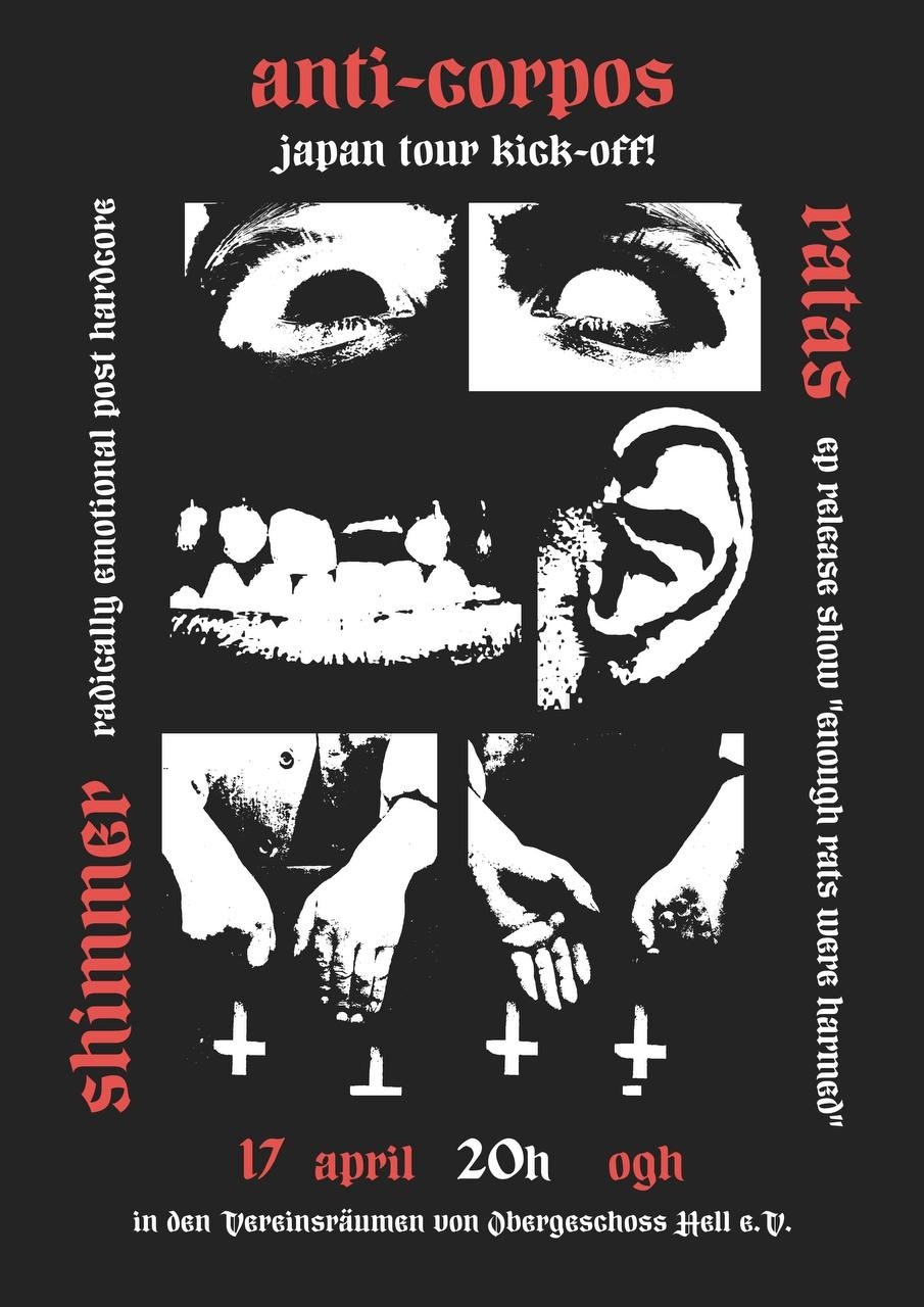Joined by longtime friends Shimmer (https://www.instagram.com/shimmer_screamo/?hl=en) and Berlin’s hottest queer punk band of the moment Ratas (https://ratas.bandcamp.com/track/sterni-baby?utm_source=ig&utm_medium=social&utm_content=link_in_bio), who will be releasing their debut EP, “ENOUGH RATS WERE HARMED!”