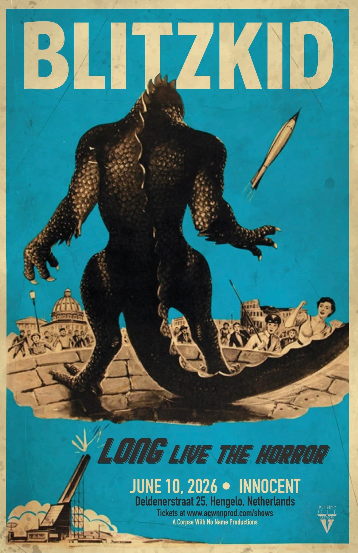 Blitzkid are a punk rock band from Bluefield, WV. Blitzkid were crucial in the development and spread of the style of music that came to be known as horrorpunk, and remain one of it's leading exponents. The band is led by singer/bassist- Argyle Goolsby and singer/guitarist- TB Monstrosity. Formed in 1997, Blitzkid have released five indie and major label studio albums, appeared on numerous compilations and extensively toured nationally and internationally. They are making a stop in Hengelo on their upcoming summer tour and you don't want to miss out on this!! After 17 years of absence they will finally be roaming The Netherlands again to takeover the stage at Innocent.