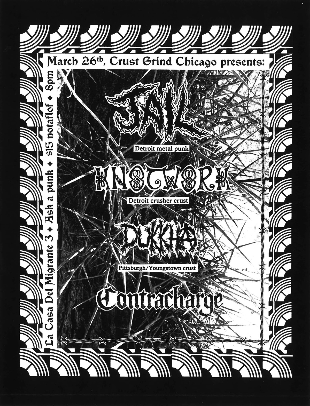 DUKKHA (Pittsburgh), JAIL (Detroit), KNOTWORK (Detroit), and locals Contracharge bring you a night of crossover, crust and Dbeats on their way to Northern Ruin 3 in Minneapolis!