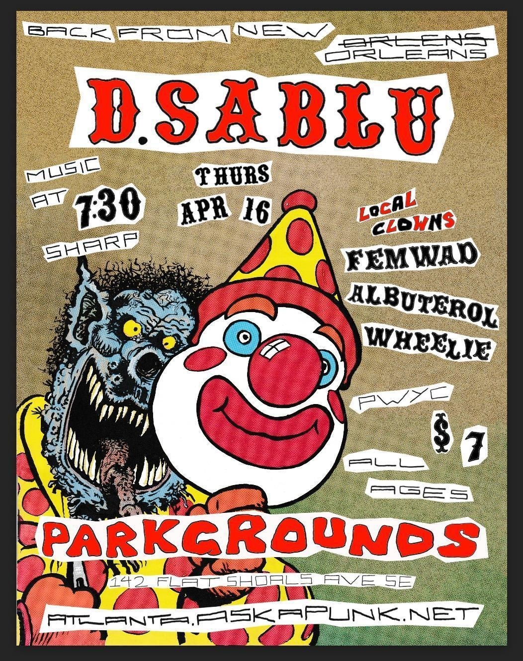 https://atlanta.askapunk.net/event/d-sablu-femwad-wheelie-albuterol142 Flat Shoals Ave SE, Atlanta, GA 30316