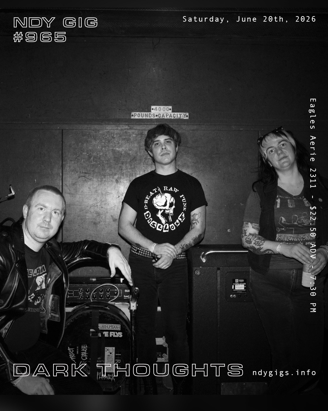 We haven't had a DARK THOUGHTS headliner in a while, so we figured why not do it special-style and throw it at the EAGLES AERIE 2311, a hall located on Elm Street, mere steps from Yonge and Dundas. Yup, you read that right.