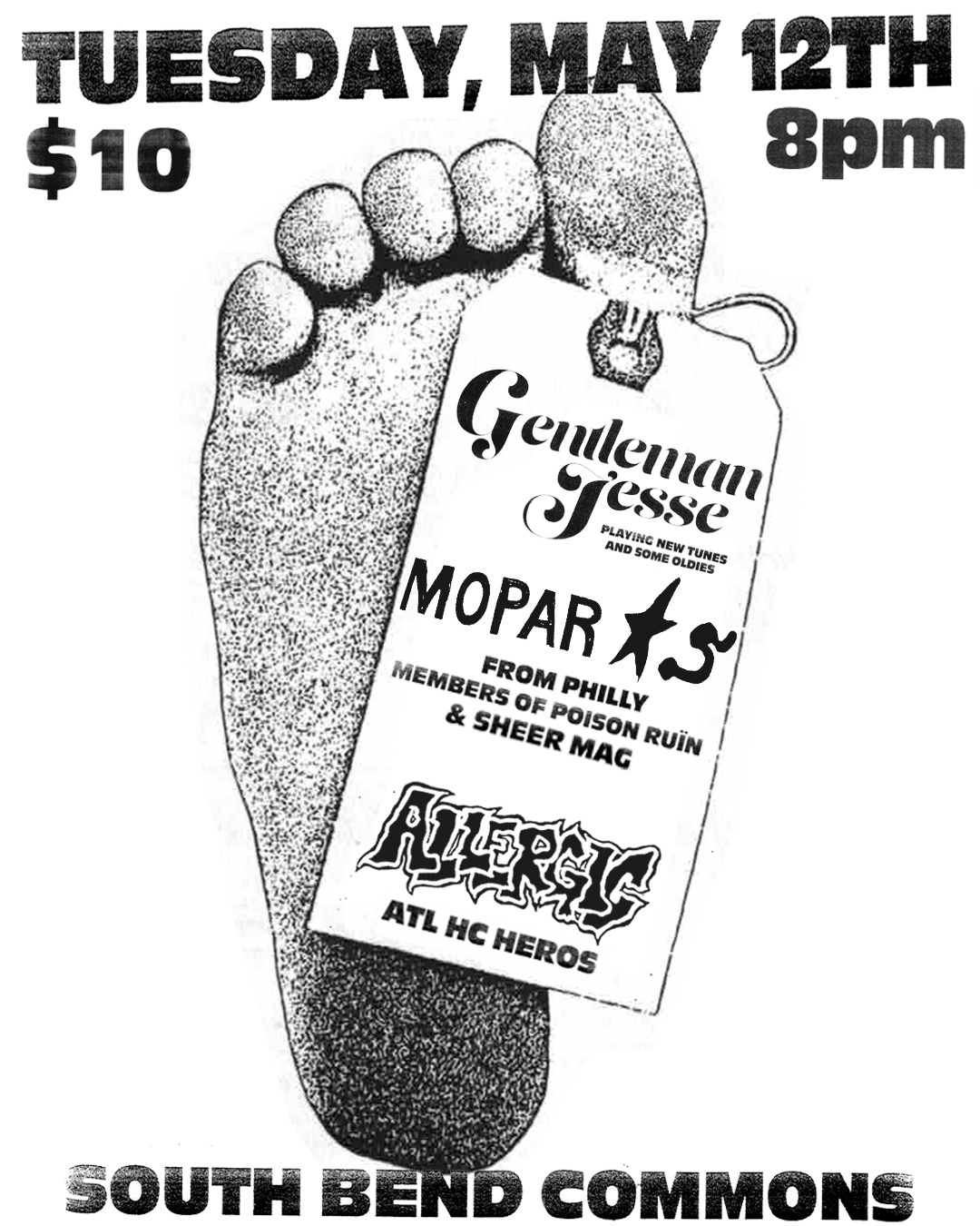 Gentleman Jesse, Mopar Stars from Philly (members of poison ruin and sheer mag) and Allergic. Show at 8pm. $10 NOTAFLOF