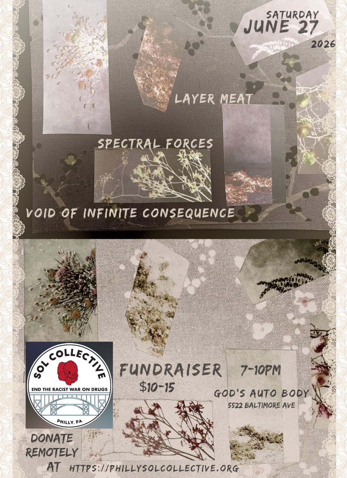 LAYER MEAT, SPECTRAL FORCES, VOID OF INFINITE CONSEQUENCE : A Benefit Show for Sol Collective