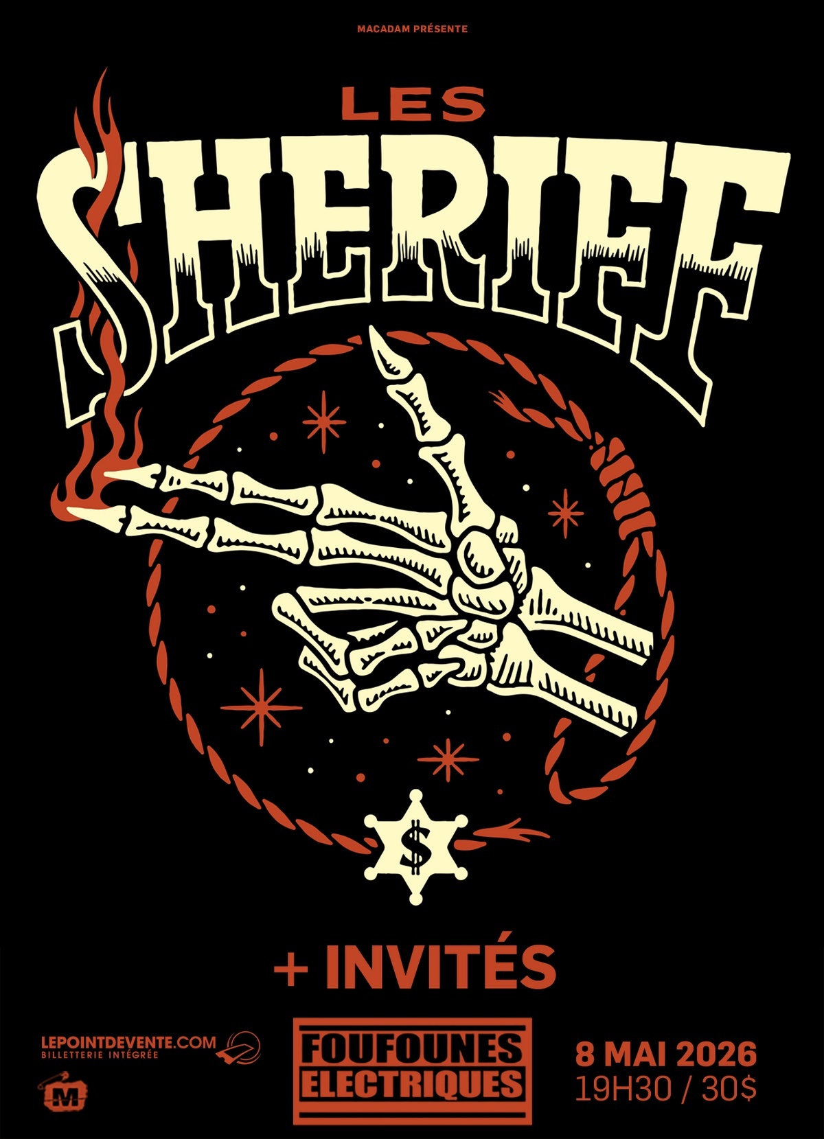 Fondé en 1984, LES SHERIFF sont considérés par la presse spécialisée comme l’un des fondateurs de la scène punk rock française. Leur dernier passage au Québec remonte à 2023. Tous les billets pour le concert de Montréal s’étaient venus en moins d’un mois. Ils seront de retour aux Foufounes Électriques le 8 mai 2026.