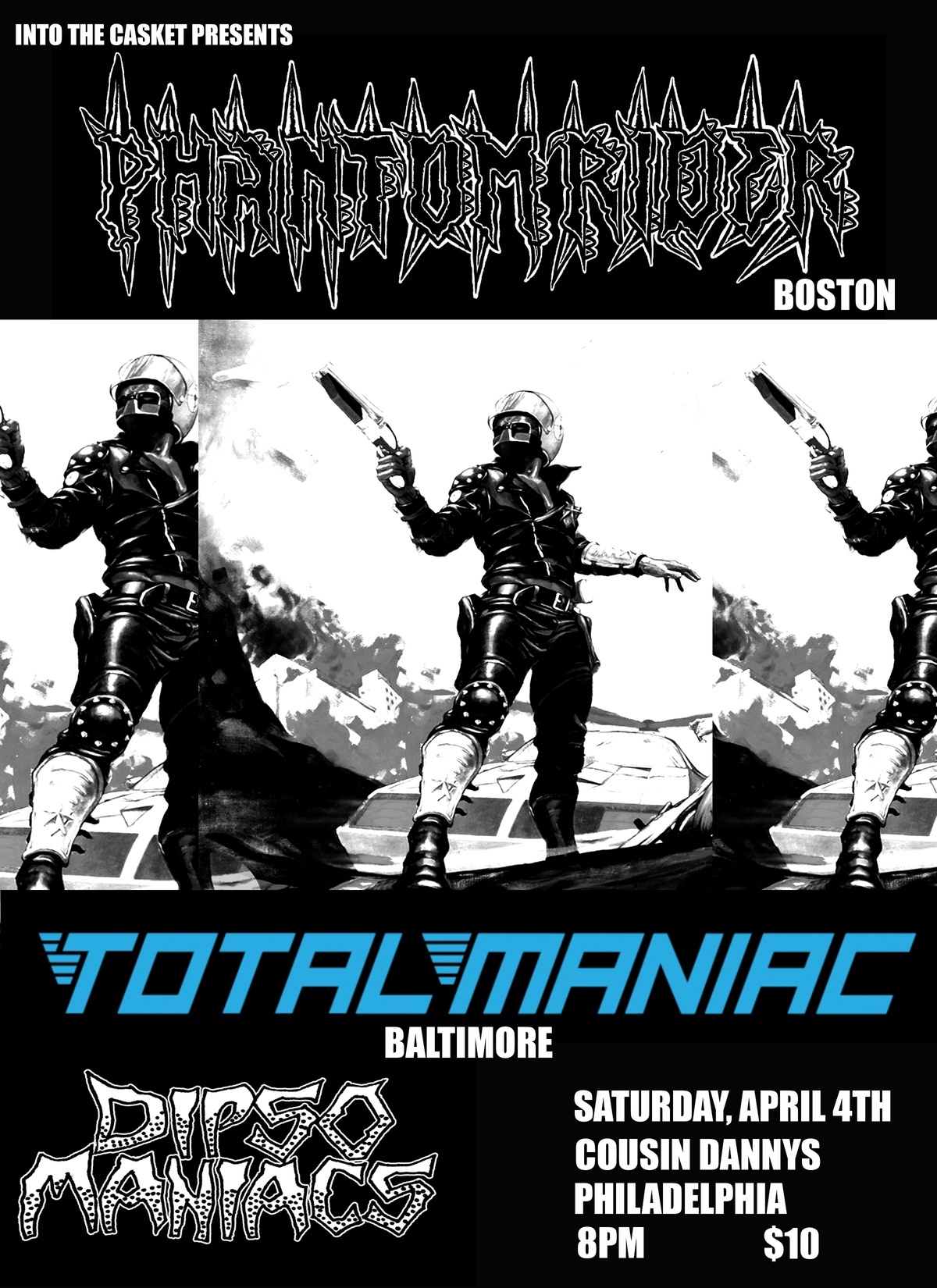 Phantom Rider - Boston Metal Punk, Total Maniac - Street Metal from Baltimore, Dipsomaniacs - Philly Punks