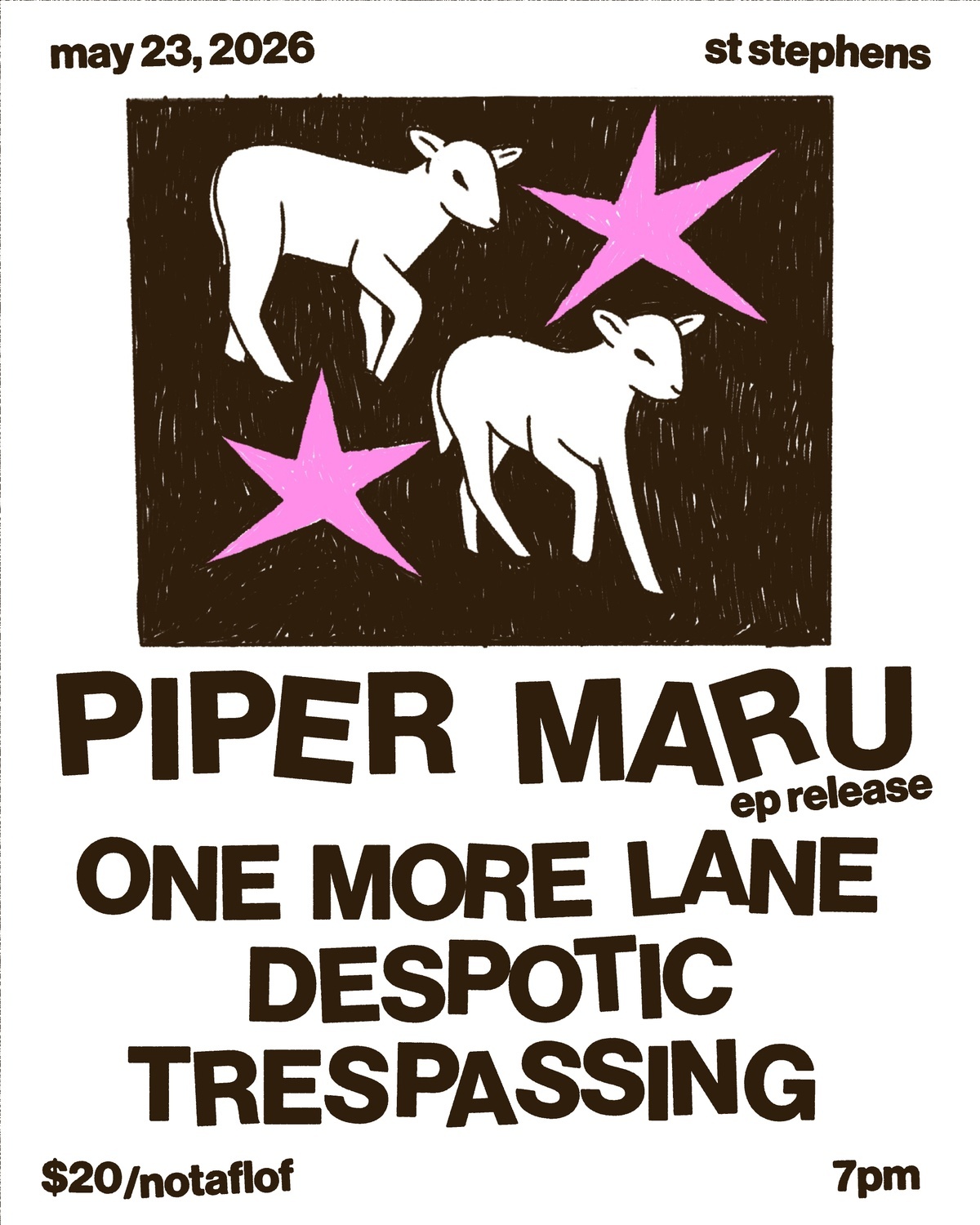 Piper Maru is back with their new EP! Come celebrate with One More Lane, Despotic, and Trespassing! DRY VENUE / PLEASE RESPECT THE SPACE
