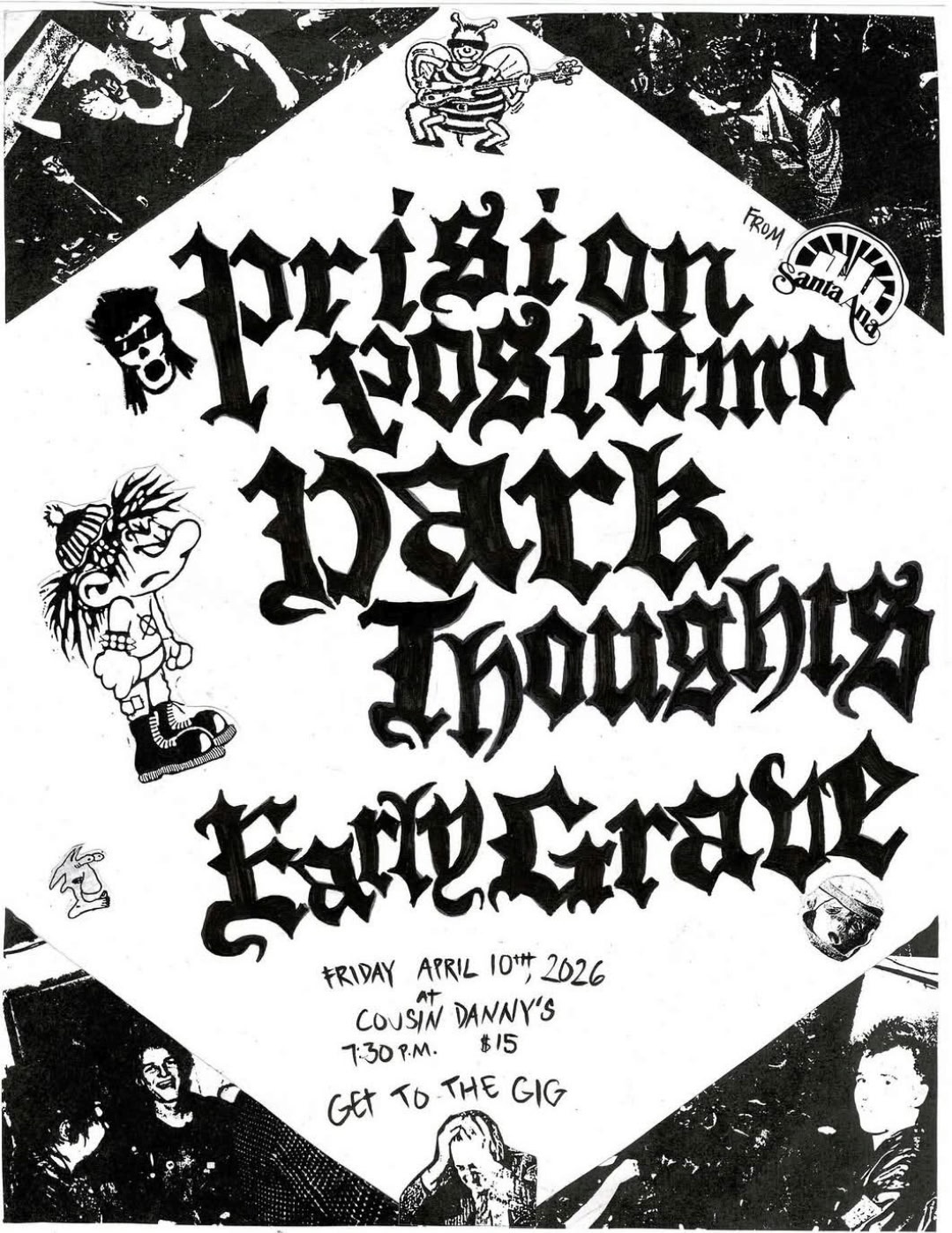 Prision Postumo from Santa Ana with Dark Thoughts and Early Grave. $15 7:30 PM