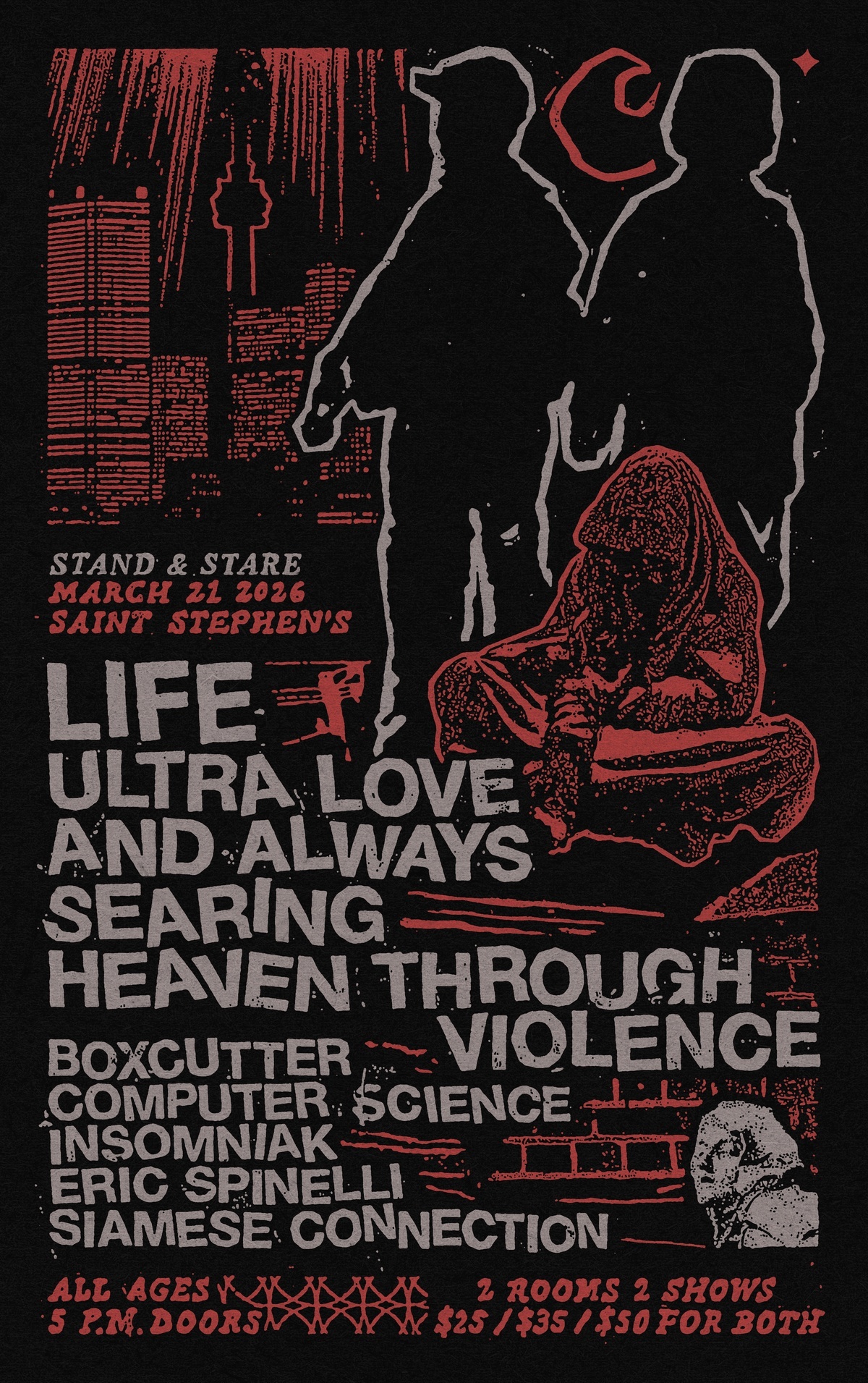 Celebrate the coming of spring with a screamo mini-fest at Saint Stephen's! $35 for the main gig, $25 for the side gig, $50 for entry to both. No overlapping sets—those who purchase entry to both gigs will be able to see full sets from EVERY band. All ages, doors @ 5, music @ 5:30 (side room) & 6 (main hall). Church of Saint Stephen-in-the-Fields is located at 103 Bellevue Avenue.